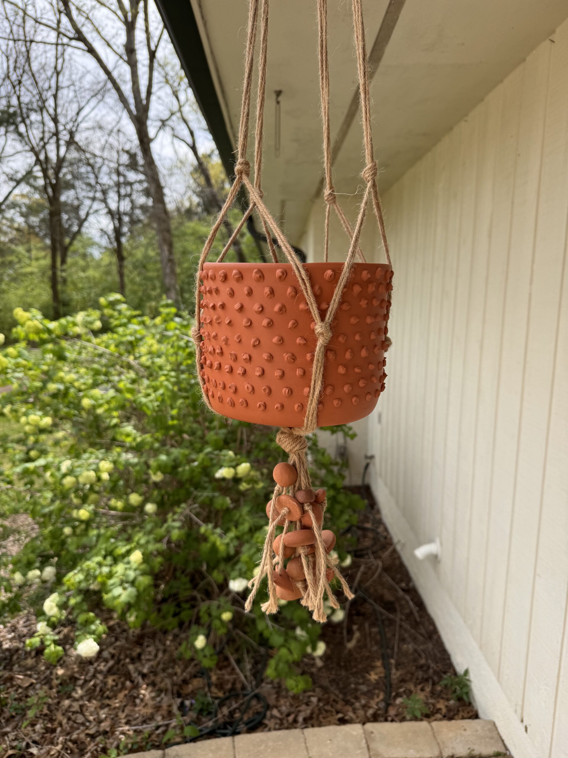 🔎 Terra-cotta hanging planter with handmade dangling beads